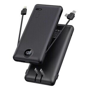 Vrurc Charger Built-in Cables & AC Wall Plug USB C Power Bank 10000mAh -Black