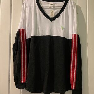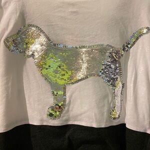 NWT and no defects at. Size medium white, grey and red long sleeve tee with small shine dog on front, big silver bling dog on back and beautiful beadwork on arms. Armpit to armpit is 22” and center back length is 29” so it is oversized. Price firm. Tote 13.