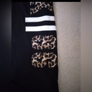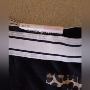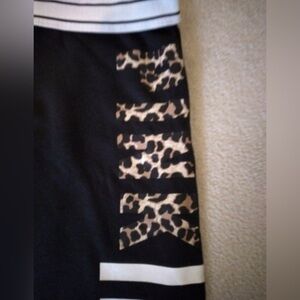 NWT Size X-small Vs. PINK sweatpants from 2014. Size X-small. Black with leopard writeout and waistband folds over to expose white with black stripes. Lighter weight. Flat waist 14” front rise 9” and inseam 27”. Tote 17.