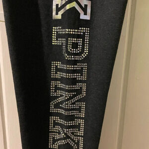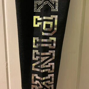 Vs pink rhinestone bling and shine dark grey leggings-medium EUC