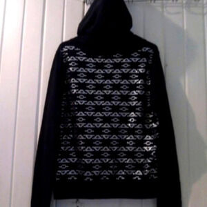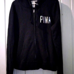 EUC very gently worn with no defects. Vintage from 2012. Black size large full zip hoodie with silver shine writeout on front and lots of silver studding all over the back and all is there. Armpit to armpit is 21" and centerback length is 23". Beautiful hoodie! Price firm.