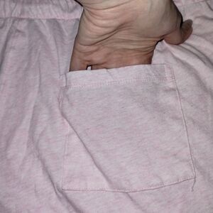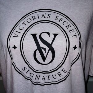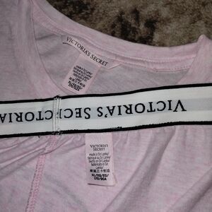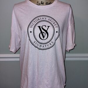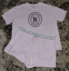Victoria's secret Heather pink short sleeve and shorts sleep set. Top is an oversized look with large print logo over the front. Shorts have side pockets and an editional back pocket with foldable logo waistband. Both are in excellent condition no holes, stains, piling or wear size XL.