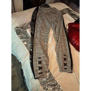 Vs Victorias secret PINK logo sequin bling lace up sweatpants joggers sz X smal