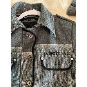 Vsct diva women’s small tweed blazer euro houndstooth chevron black & white 90s