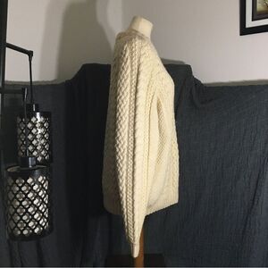 VTG Beautifully hand knitted cream color wool sweater. Warm and comfy. Great detail. No size available, best guess it's a size...Pre-owned in great condition. Please refer to pictures for best description and condition verification.
