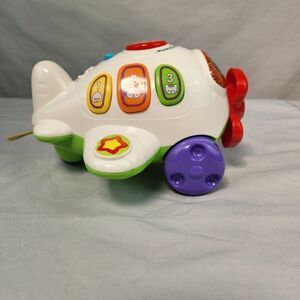 This little plane is in really great condition. It has a couple of minor marks, but it is clean. Tested and all functions work. No batteries included. Your little one will love to hit the skies with this toy.