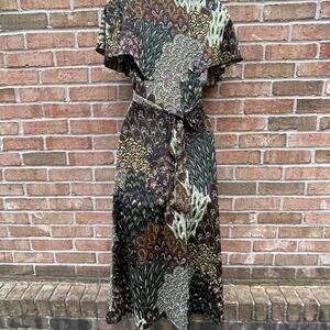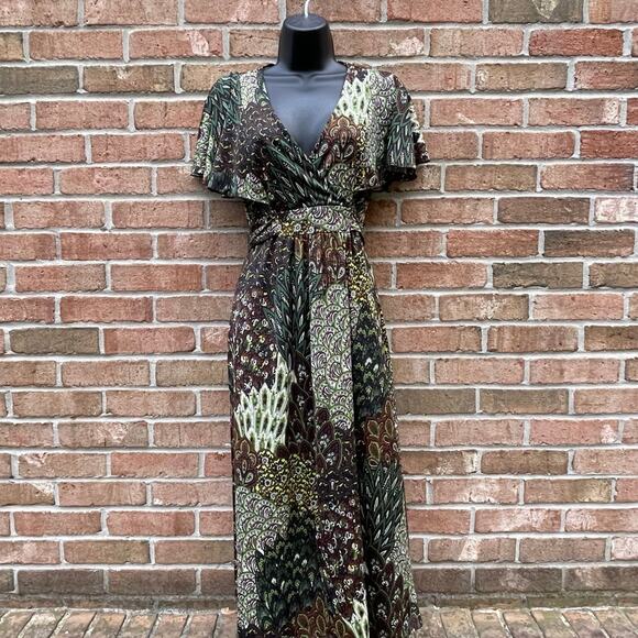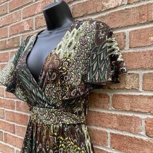 Vtg 00s Y2K Peacock babydoll Festival Flutter Sleeve Paisley Maxi Flowy Dress M