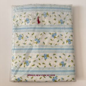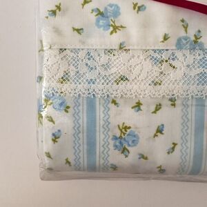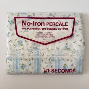Vtg #1 SECONDS No Iron Percale Double Flat Sheet Blue Floral Lace NEW NOS 70's