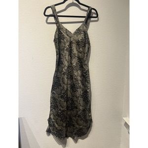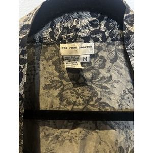 Vtg 100% Silk Long Peignoir 2 Piece Set-For Your Comfort Med Black & Gold Floral.