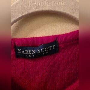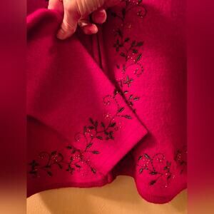 Vtg 100% Wool Floral Embroidered Zip Up Cardigan Sweater Size PM Karen Scott Knit Holiday Christmas Family Gatherings Photos Romantic Cottagecore Boho