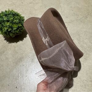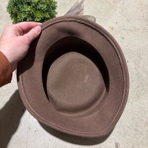 Vtg 100% Wool Hat Brown Sheer Bow Equestrian Mary Poppins Fall Old Fashioned