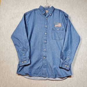 Vtg 1250 North Shirt Mens Large Blue Denim U.S. Army Amwrican Flag Button Down