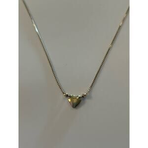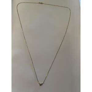 Vtg 14K Plumb Heart Necklace 22.5" Length Dainty Heart w/2 Balls Made in Italy