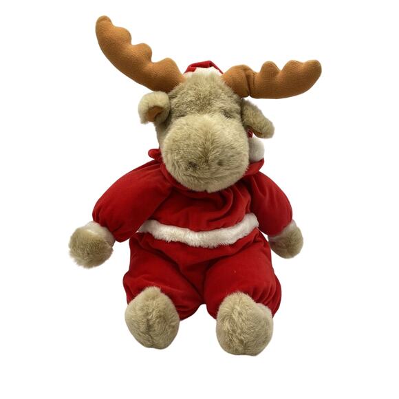 Vtg 16" Prestige REINDEER IN SANTA SUIT Tan Plush Stuffed Animal 1988 Moose
