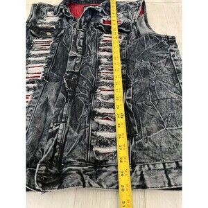 Vtg 1738 Denim Vest Jacket Cotton 3XL Biker Rockabilly Black Shredded Acid Wash
