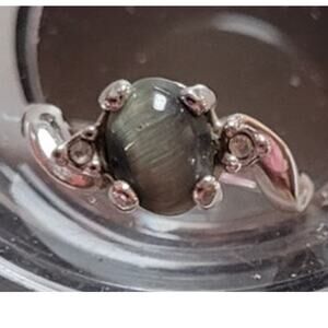 Vtg 18KT HGE Gray Cat’s Eye Ring Silver Tone Open Back Setting Size 5 3/4 5.75