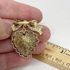 Vtg 1928 Porcelain Rose Brooch Heart Dangle Ribbon Bow Gold Tone Lapel Pin