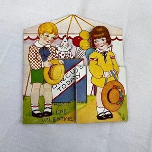 Vtg 1930s 1936 Valentine's Day Holiday Circus Carnival Card