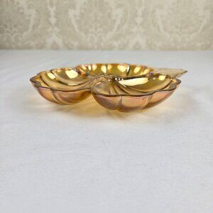 Vtg 1930's Carnival Glass 3 Leaf Clover Shaped Divided Dish Iridescent Marigold