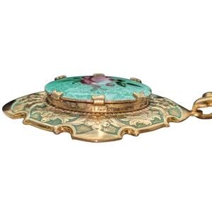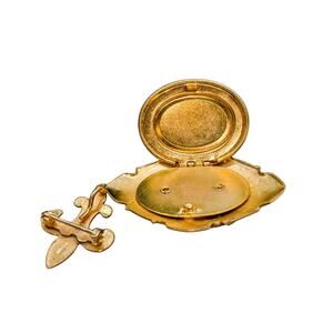 Vtg 1930s Guilloche Enamel Work Rose Design Fleur de Lis Locket Hanging Brooch