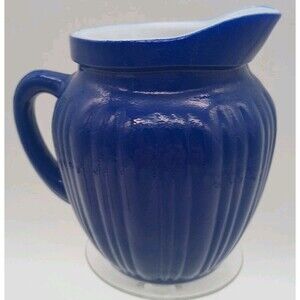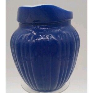 Vtg 1930's Hazel Atlas 4" Ribbed Blue & White Glass Creamer Milk Pitcher