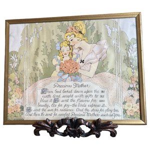 Vtg 1930s PRECIOUS MOTHER Poem Print Art Gold Frame Mother's Day Hanger 9" x 7"