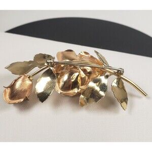 Vtg 1940's Krementz Signed Two Tone Gold Filled Rose Roses Brooch Pin 2.25" long