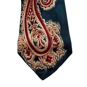 Vtg 1940s Men's Tie Cravat Paisley Green Maroon Beige Swing Rockabilly Artcraft