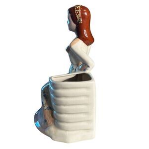 Vtg 1940's Weil Ware Sitting Lady California Pottery Vase Stamped on bottom 4039