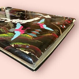 Vtg 1945-1950 MCM Korea Japan Lacquered Large Photo Album Painted Wood 15.5x11