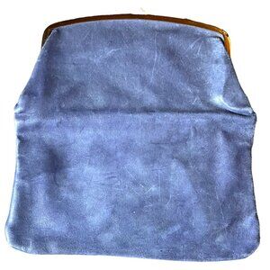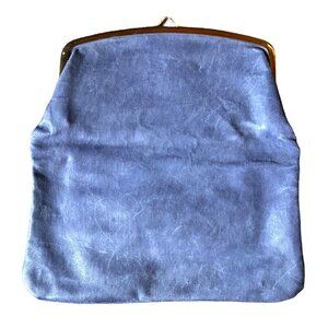 Vtg 1950s Budd Leather Blue Foldover Clutch w/Kiss Clasp & Attached Change Purse