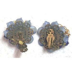 Vtg 1950s Glamorous Hollywood Celluloid Floral Statement Blue Clip On Earrings