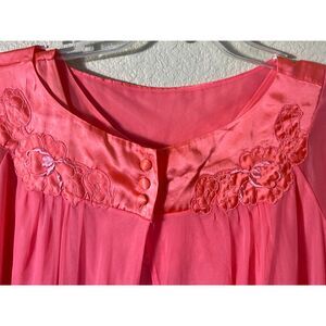Vtg 1950s Gossard Artemis Bright Pink Peignoir Nightgown & Robe Set Size M READ