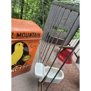 Vtg 1950’s Hartz Mountain Bird Foods Advertising Metal Bird Cage & Accessories