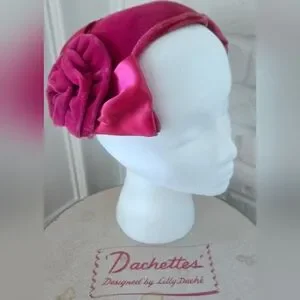 Vtg 1950s Lilly Daché Floral Calot Hat, Ribbon, Velvet, S/7