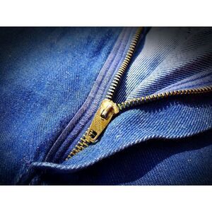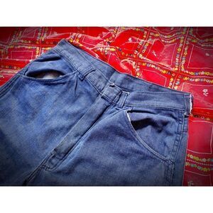 Step back in time with this pair of 50s/60s blue jeans, which offer the perfect fit & light weight feel! The pair is a zipper front equipped with a Conmatic fastener & Snap button closure.