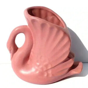 Vtg 1950's Rosemeade Dakota Pottery Pink Swan Planter Pot Country Farmhouse