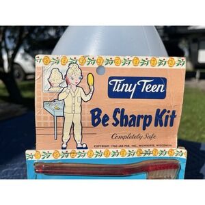 The product is a vintage 1960 dime store toy play set from the United States, specifically targeting pretend play scenarios. The set includes a tiny teen play set with a dial soap and Pepsodent theme, making it a nostalgic and unique addition to any vintage toy collection. With its retro design and timeless appeal, this toy set offers a glimpse into the fun and imaginative play of the past for collectors and enthusiasts alike.