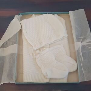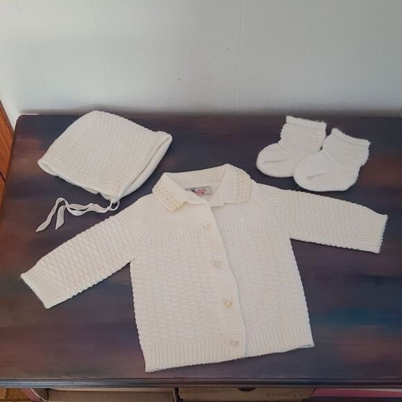 Vtg 1960 Blue Bird Knitwear Knit Baby Sweater Cap And Booties With Original Box