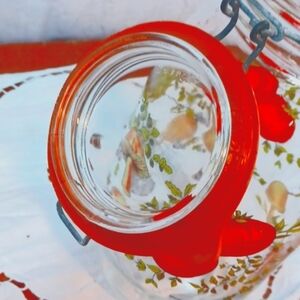 Vtg 1960,S Glass Jar Canister Peppers Mushrooms France Niveau De Remplissage