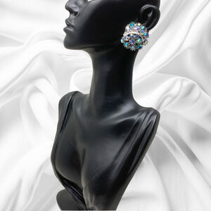 Vtg 1960s ART Aurora Borealis Crystal Silver Tone Earrings Signed Couture Runway