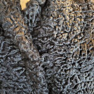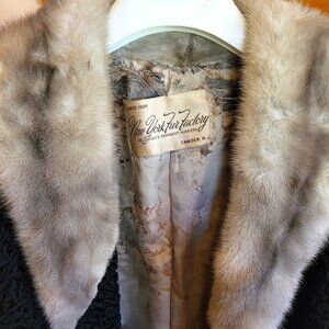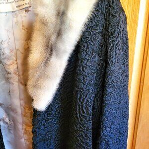 Vtg 1960's Black Broadtail Persian Lamb Fur Jacket with Grey Mink Fur Collar
