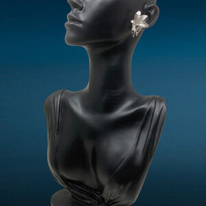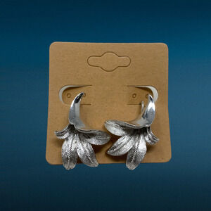Vtg 1960's Coro Dimensional Lily Floral Silver Tone Clip On Earrings Couture