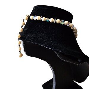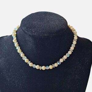 Vtg 1960's Laguna Crystal White Bead Pearl Choker Necklace Earring Matching Set