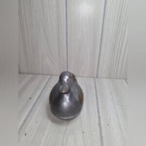 Charming silver duck figurine with gold accents. Perfect for decor.