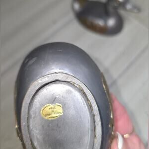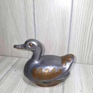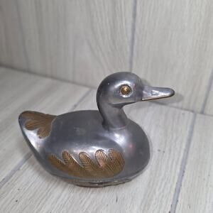Vtg 1960s Pewter & Brass Duck Trinket Dish Bird Figurine Silver & Gold Jewlery