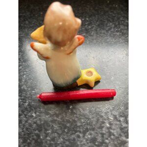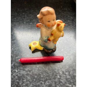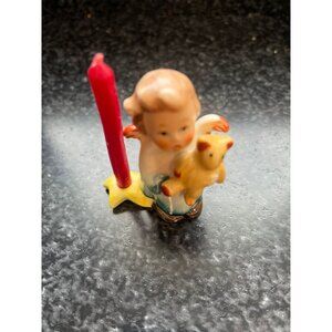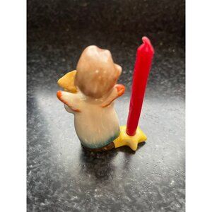 Vtg 1960's Porcelain Little Girl With Wings Holding A Teddy Bear & A Little Star At Her Feet Candle Holder W. Germany