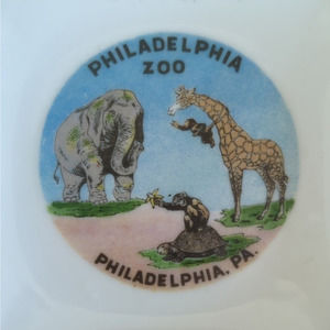 Vtg 1960s Porcelain Souvenir Philadelphia Zoo Hangable Mini Plate Trinket Dish