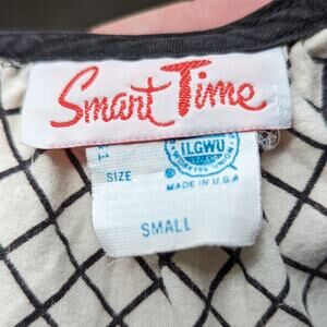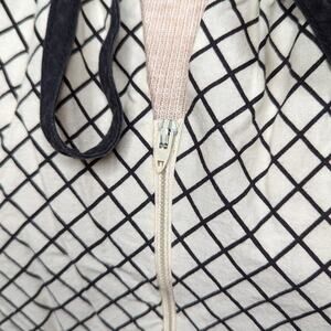 Vtg 1960s Smart Time Ivory Black Windowpane Tiger Print Zip Up House Dress S