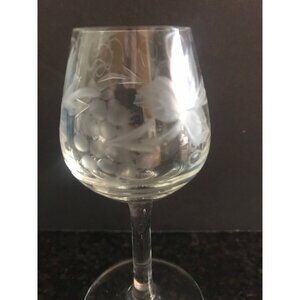 Vtg 1960's Total Of 24 Available Etched Clear Crystal Cordial Stems Made in Romania Grape & Leaves Motif